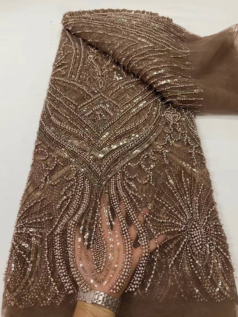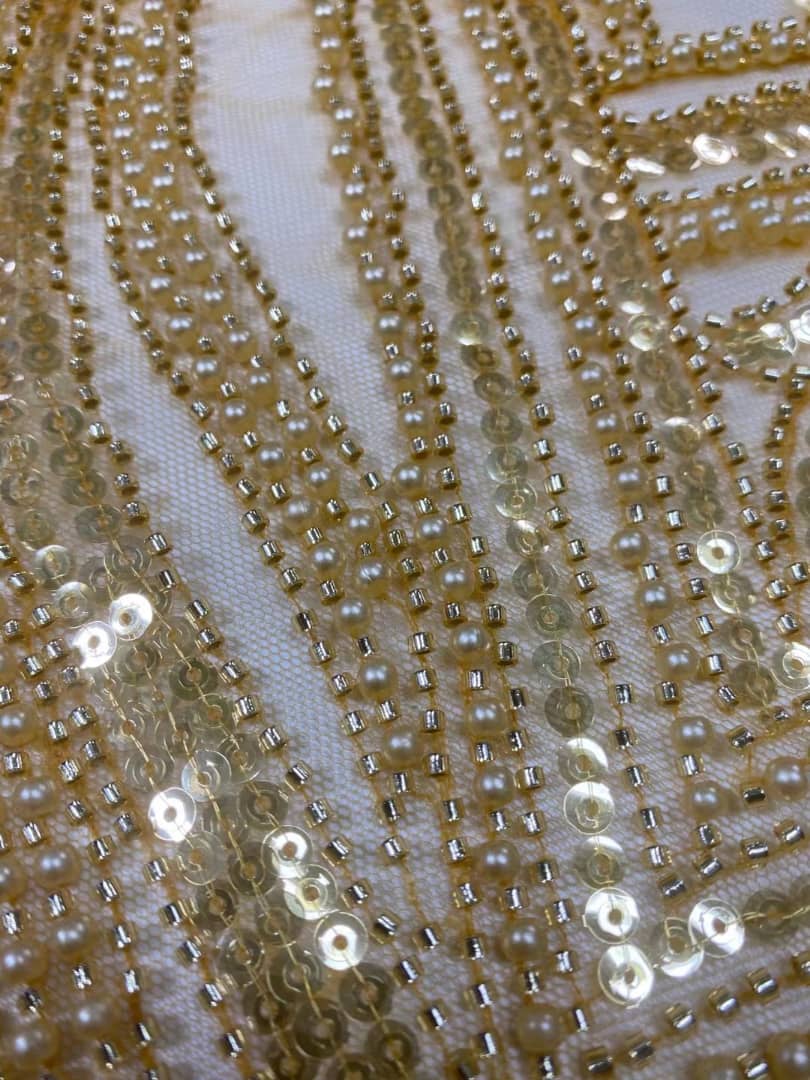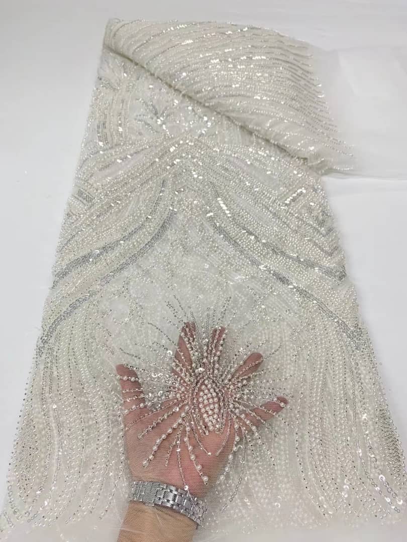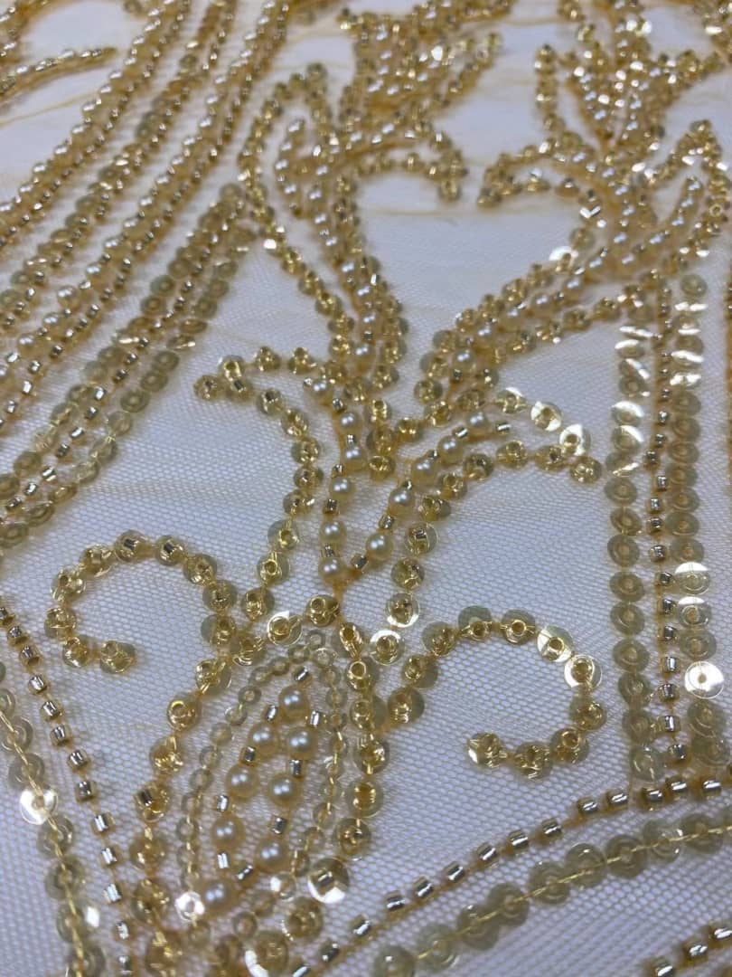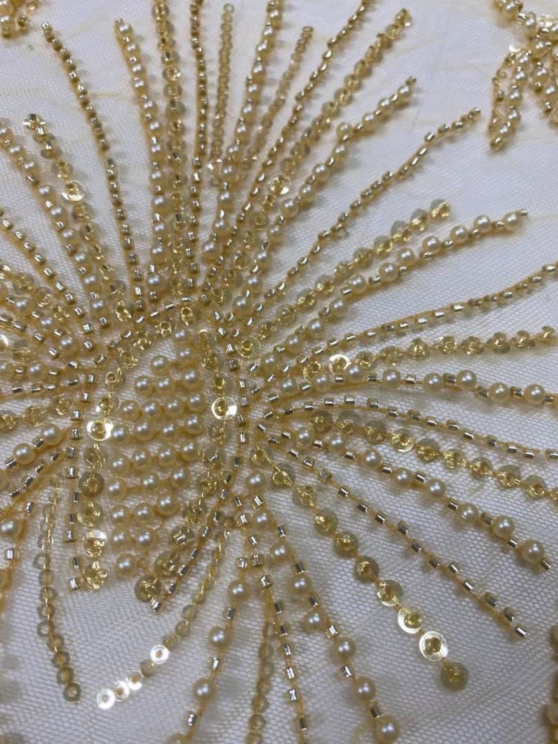 Esta tela de alta calidad se mide en 5 yardas con cuentas bordadas y lentejuelas. Es suave, muy delicado y bonito.