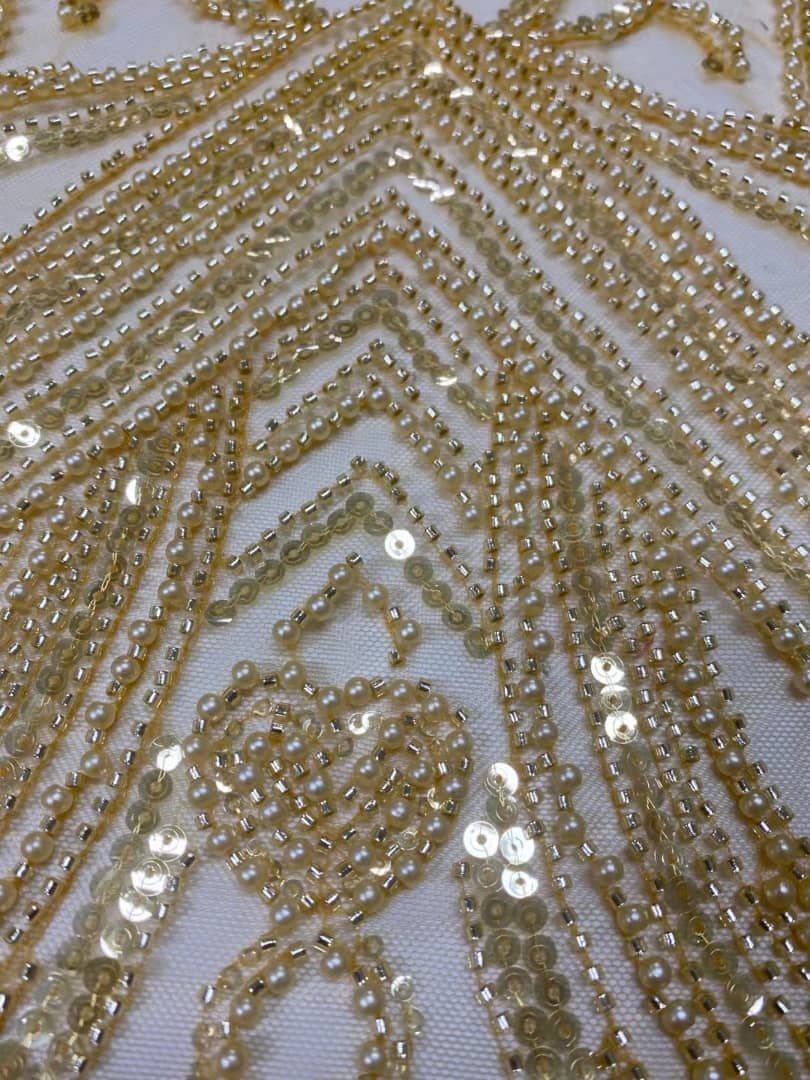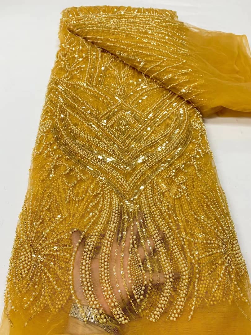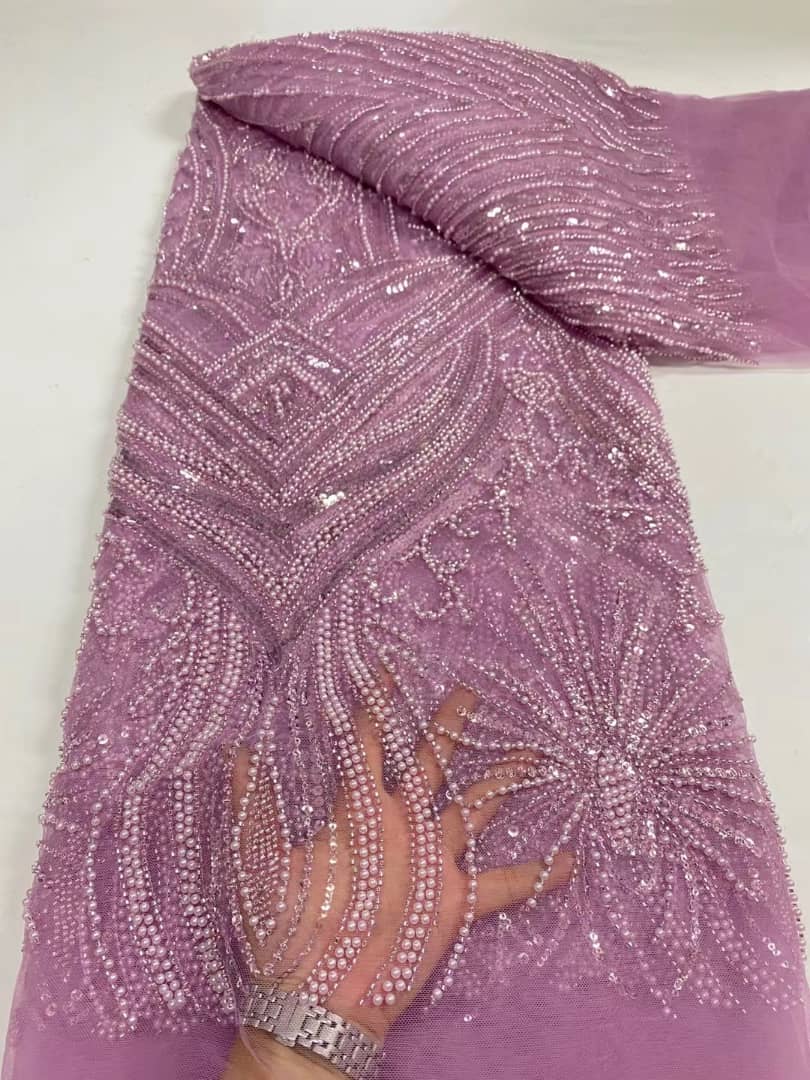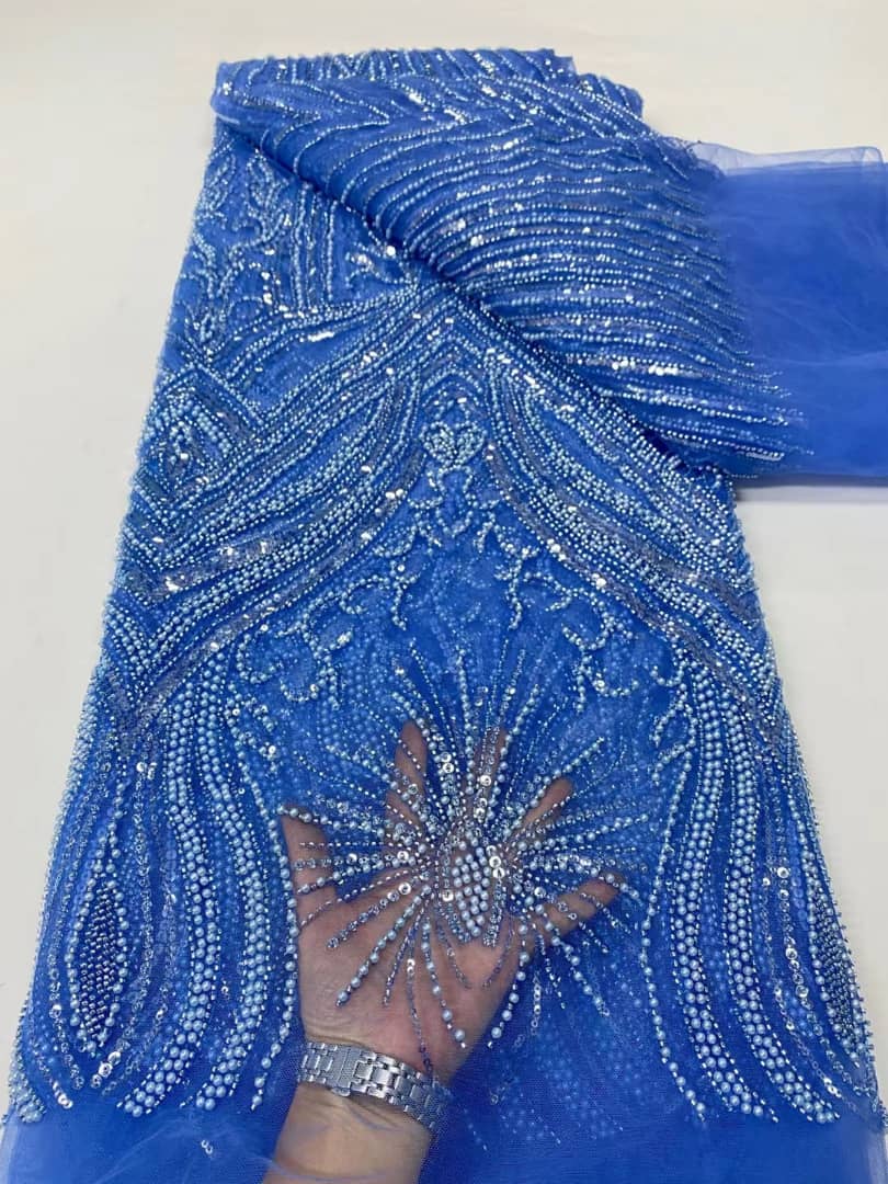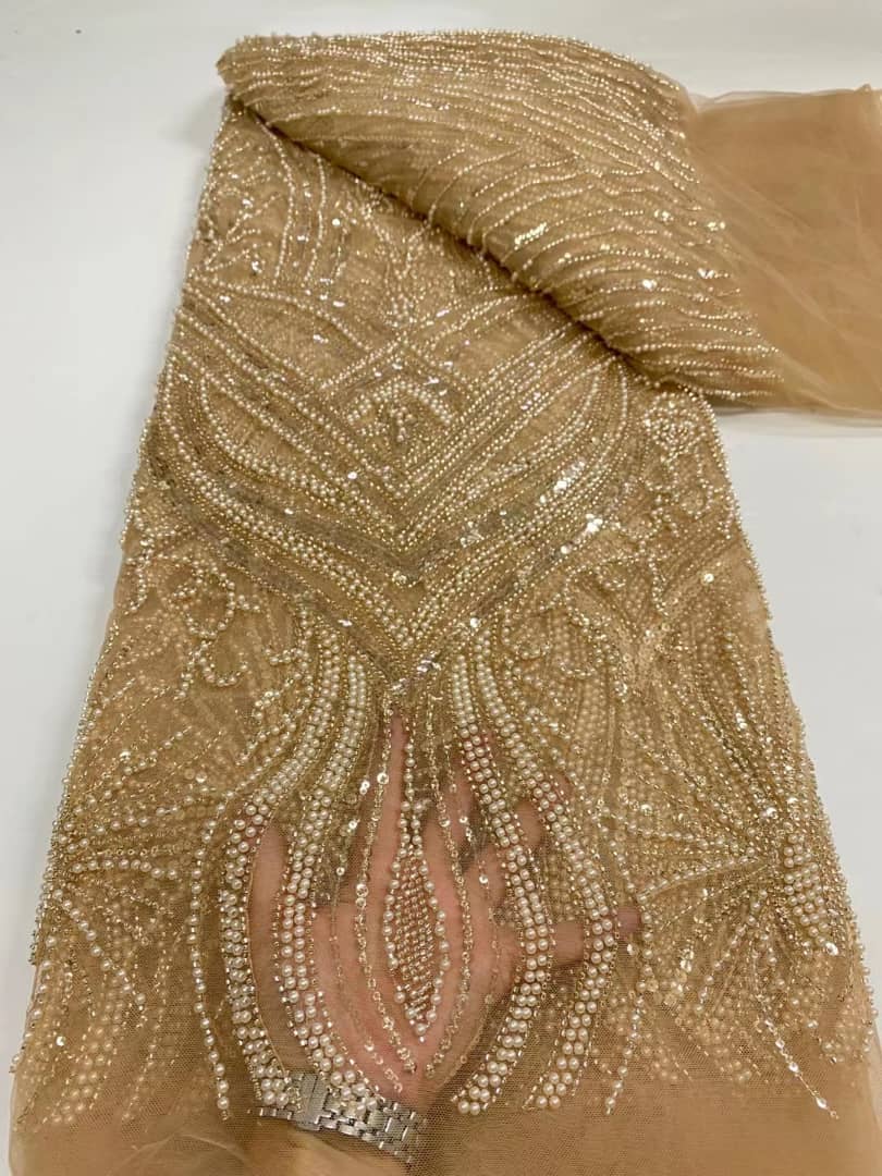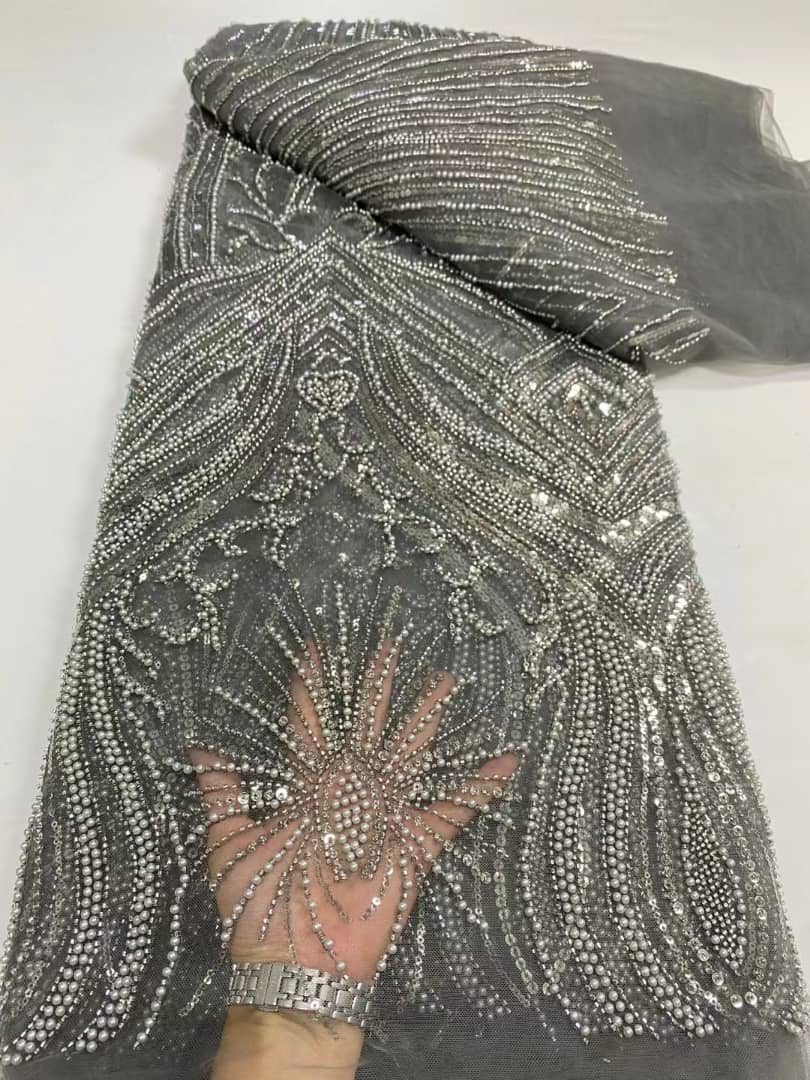 Esta tela de alta calidad se mide en 5 yardas con cuentas bordadas y lentejuelas. Es suave, muy delicado y bonito.