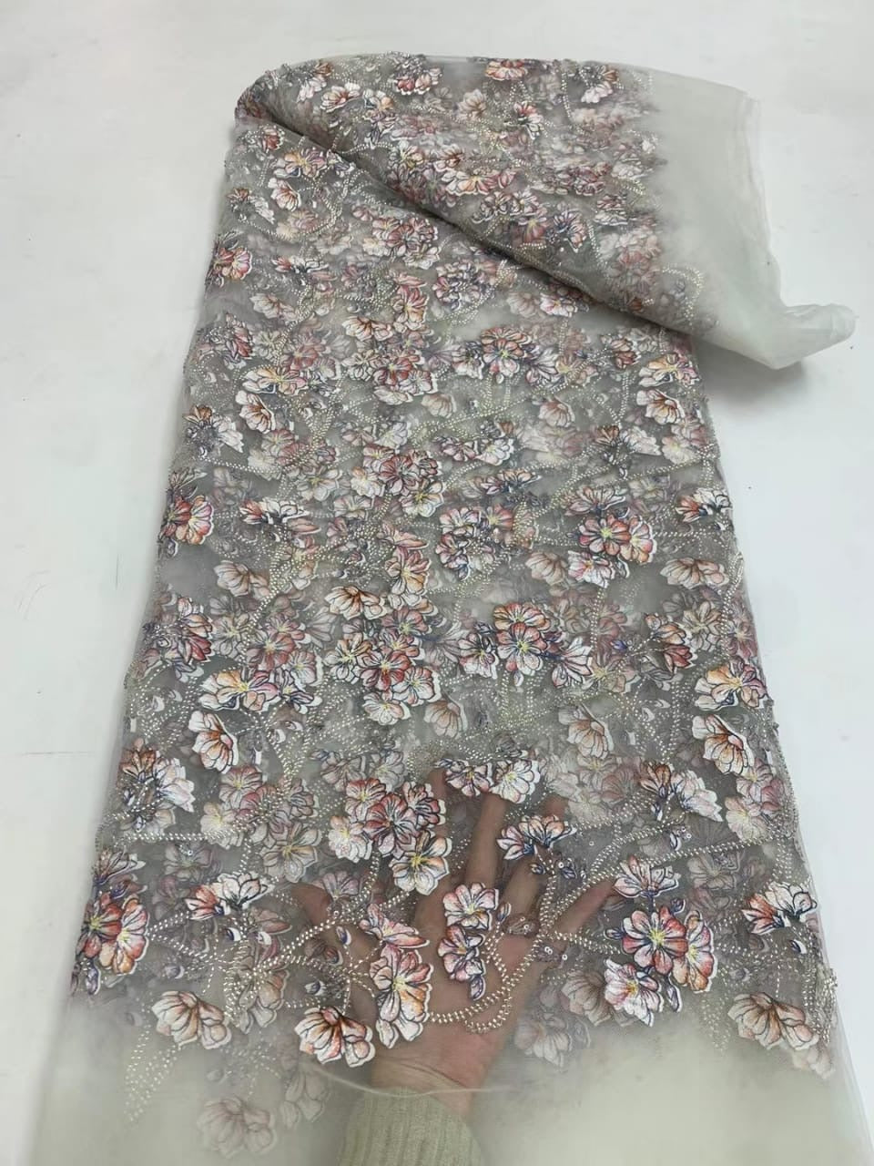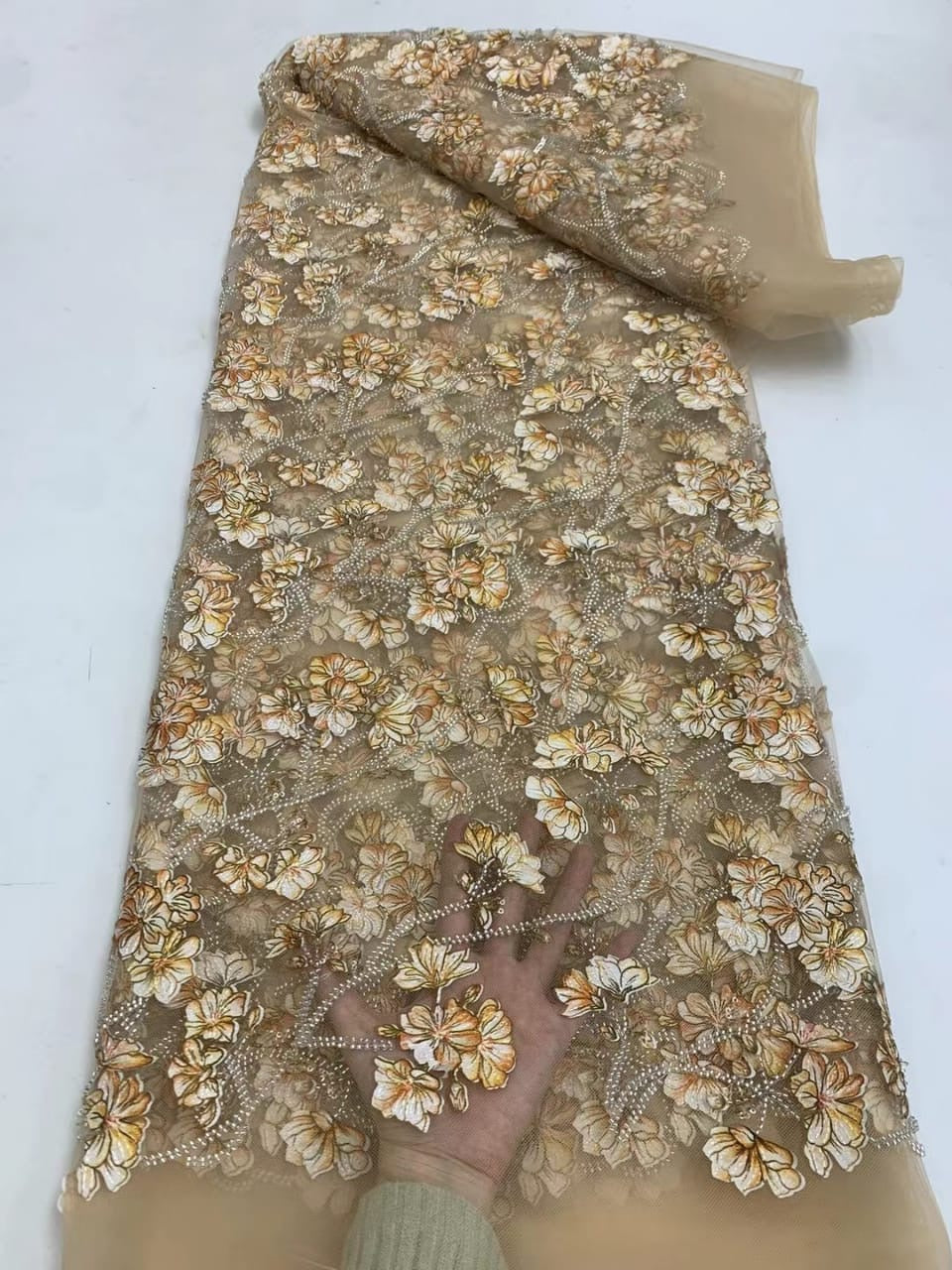 This high quality Fabric is measured in 5 Yards With Embroidered Beading and Sequin. It is soft, very delicate and beautiful.