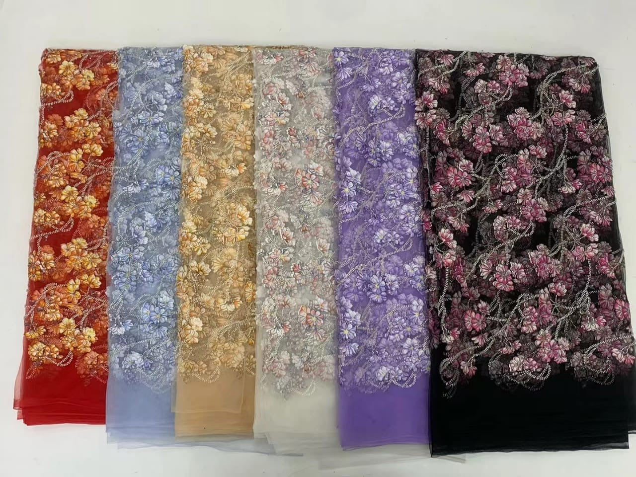 This high Quality Fabric is made with Fashion embroidered rhinestones can be used in making party wedding dresses, skirts, shawls, scarves and other other fashion apparels as you would like.