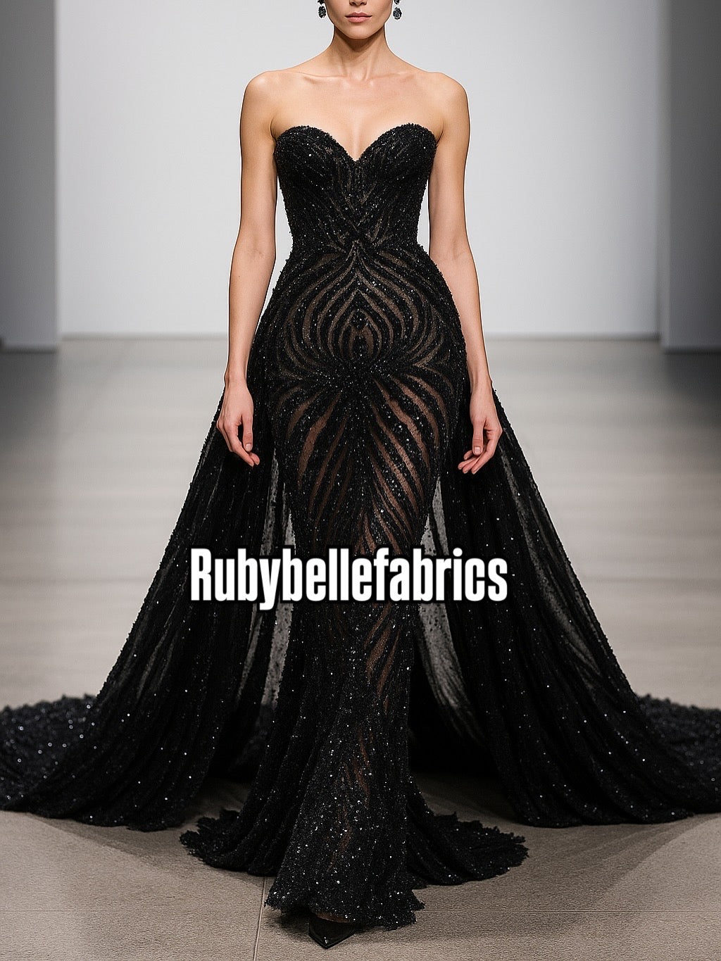 Upgrade your couture creations with our Luxury Sequin Beaded Mesh Lace Fabric, exclusively from Rubybellefabrics. This premium embroidered tulle features hand-placed sequins, shimmering beads, and elegant pattern detailing, perfect for: