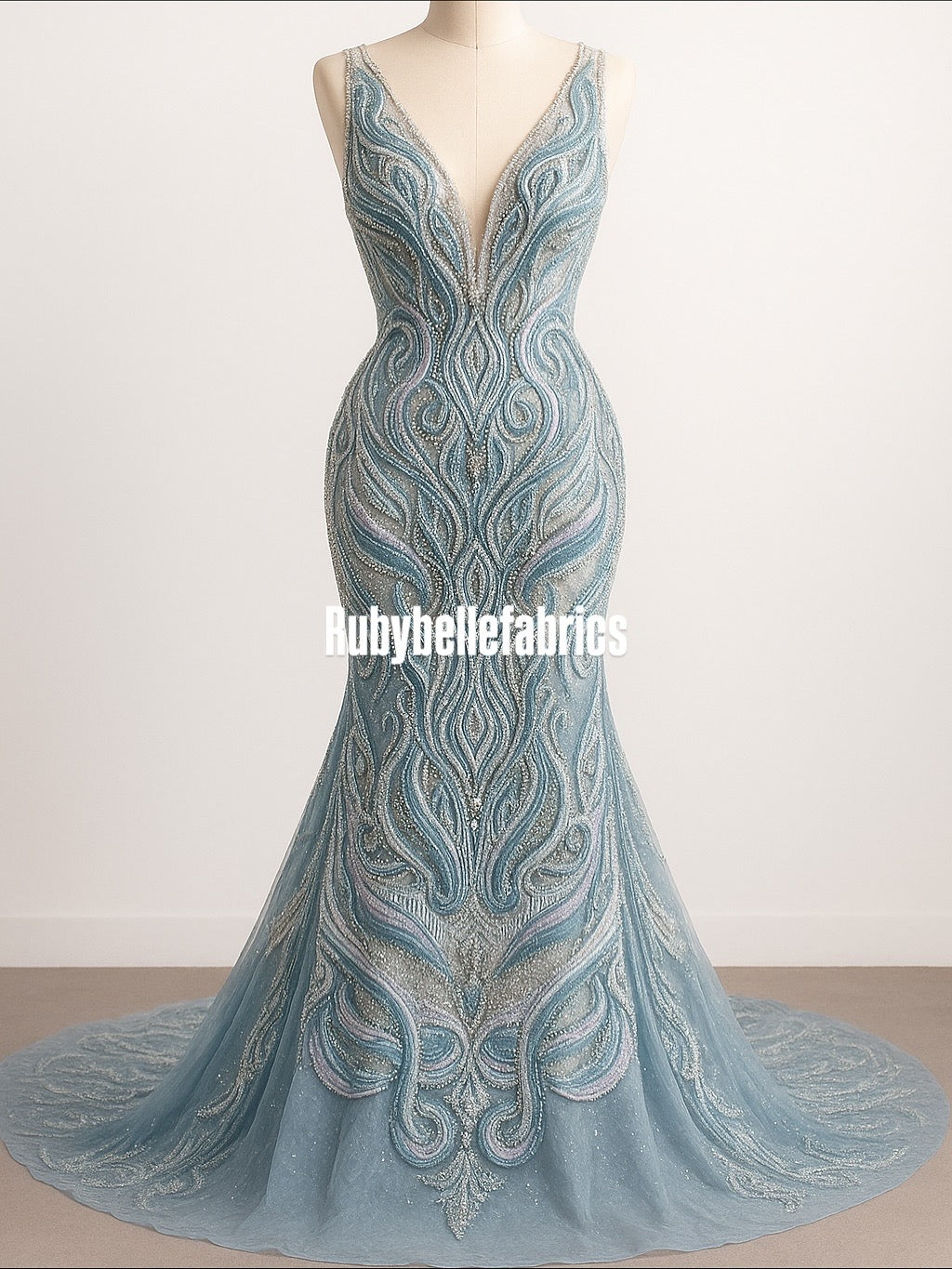The layered sequins and beads create a shimmering 3D effect that changes beautifully under light. This fabric is perfect if you want your design to stand out and radiate sophistication.