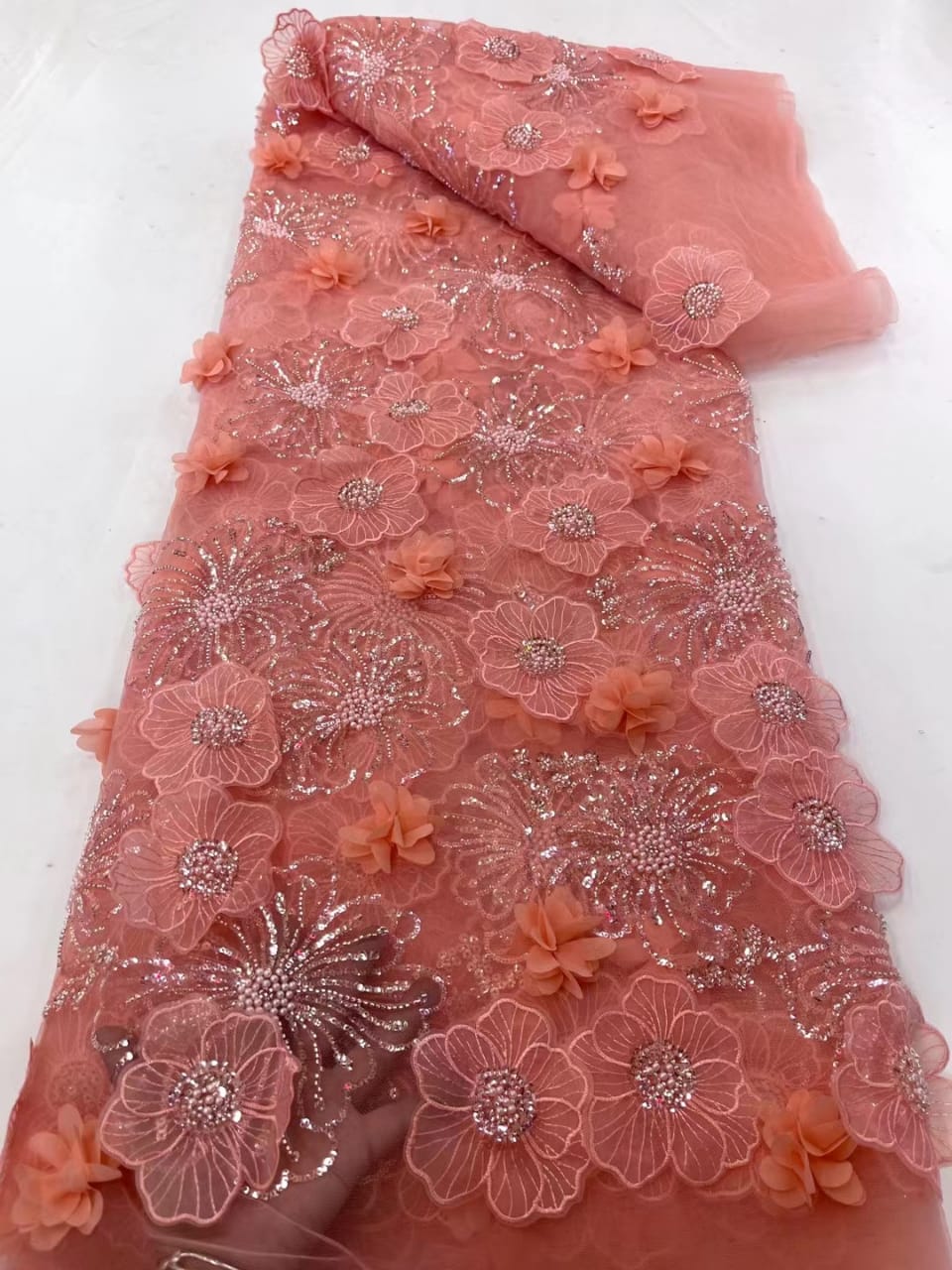 This high quality Fabric is measured in 5 Yards With Embroidered Beading and Sequin. It is soft, very delicate and beautiful.