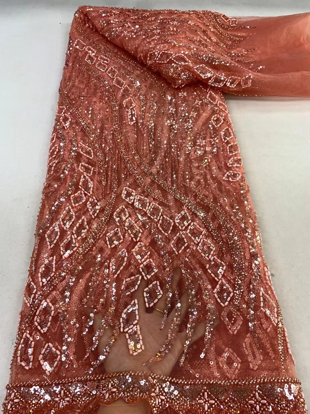 This high quality Fabric is measured in 5 Yards With Embroidered Beading and Sequin. It is soft, very delicate and beautiful.