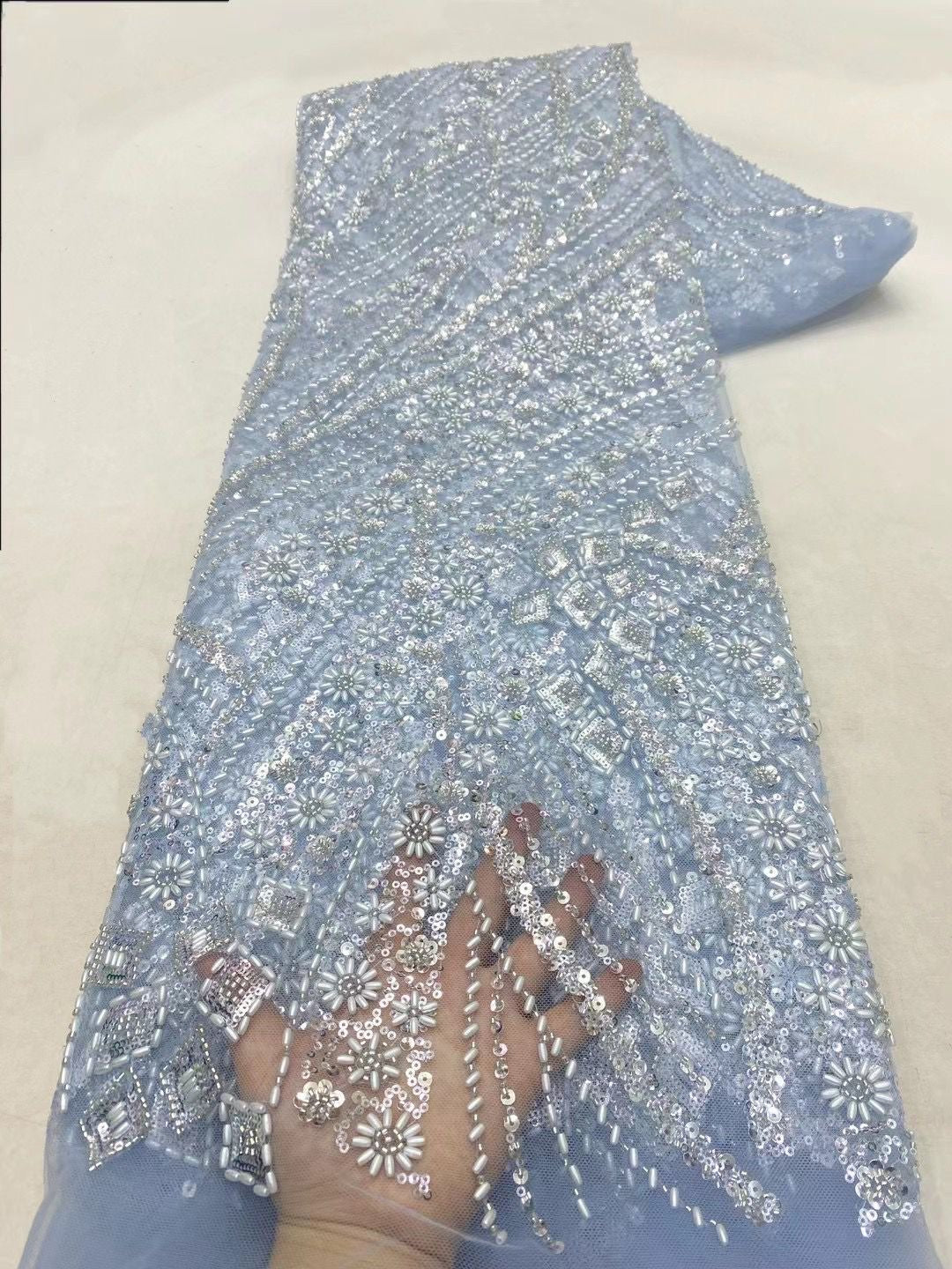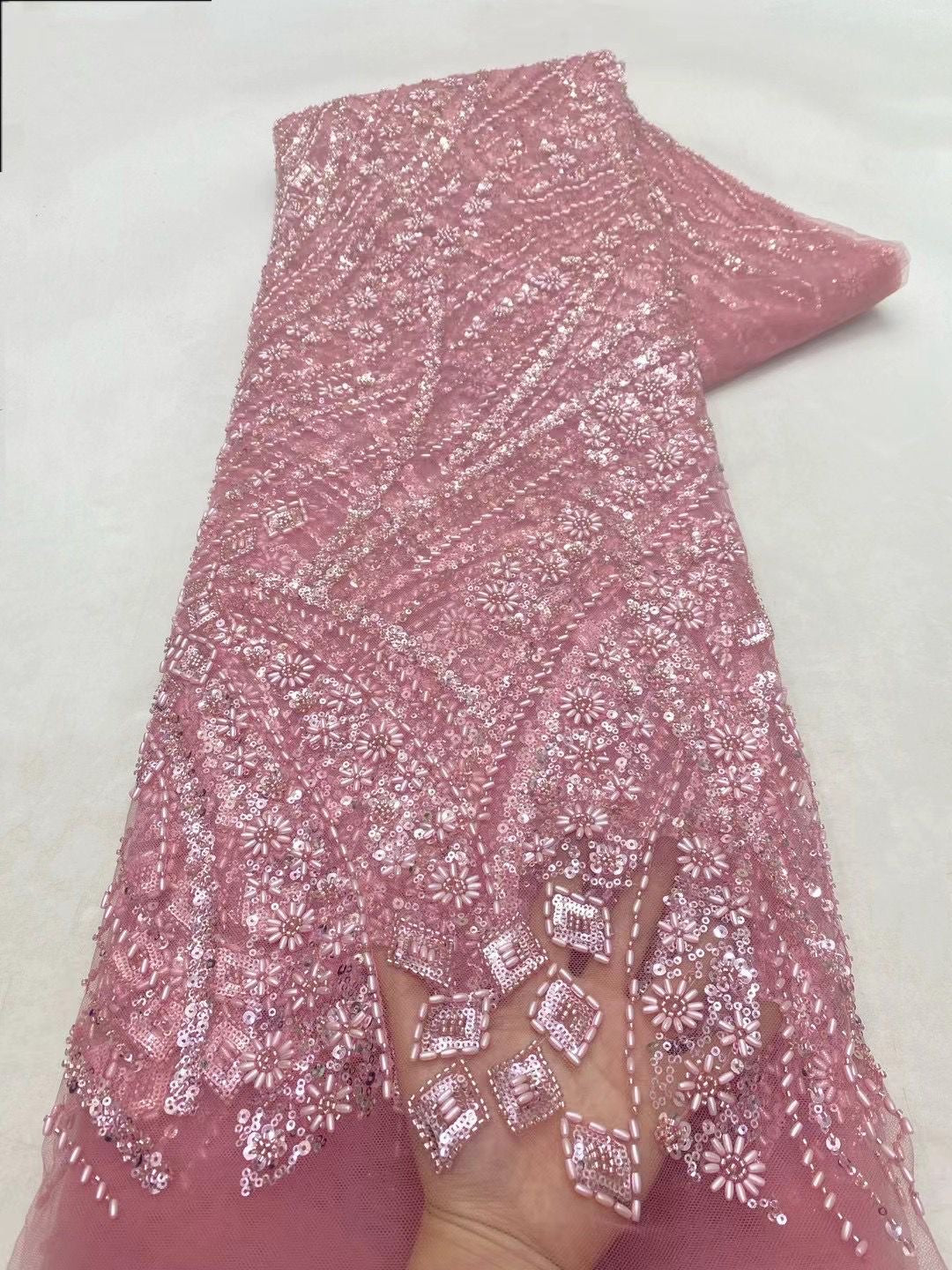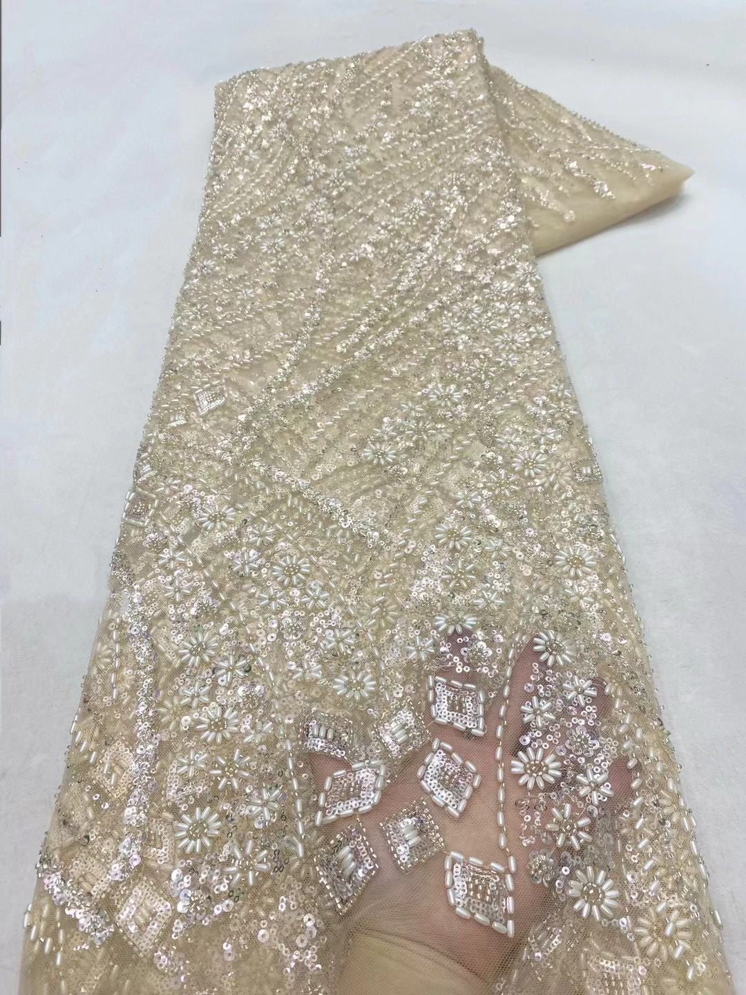 This high quality Fabric is measured in 5 Yards With Embroidered Beading and Sequin. It is soft, very delicate and beautiful.