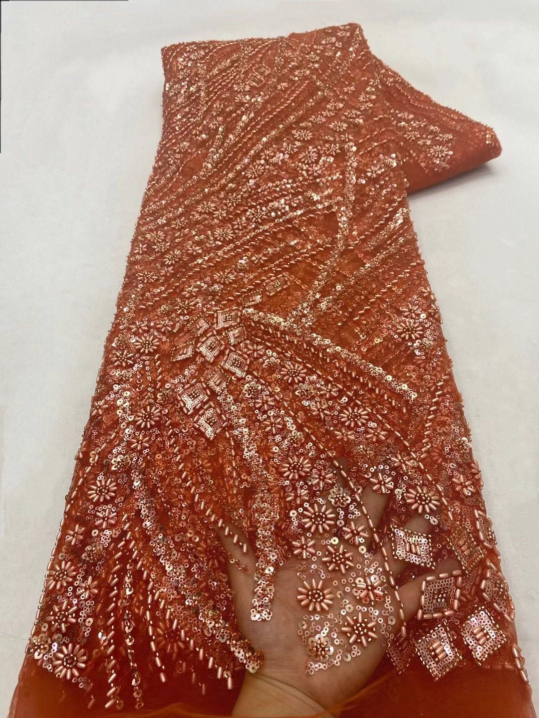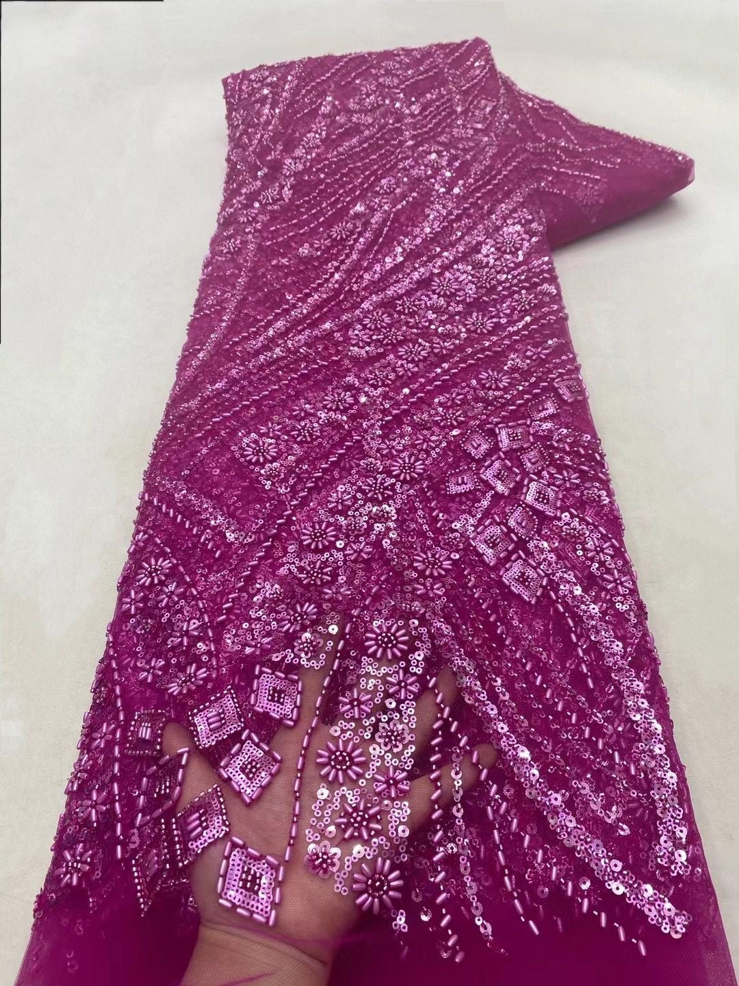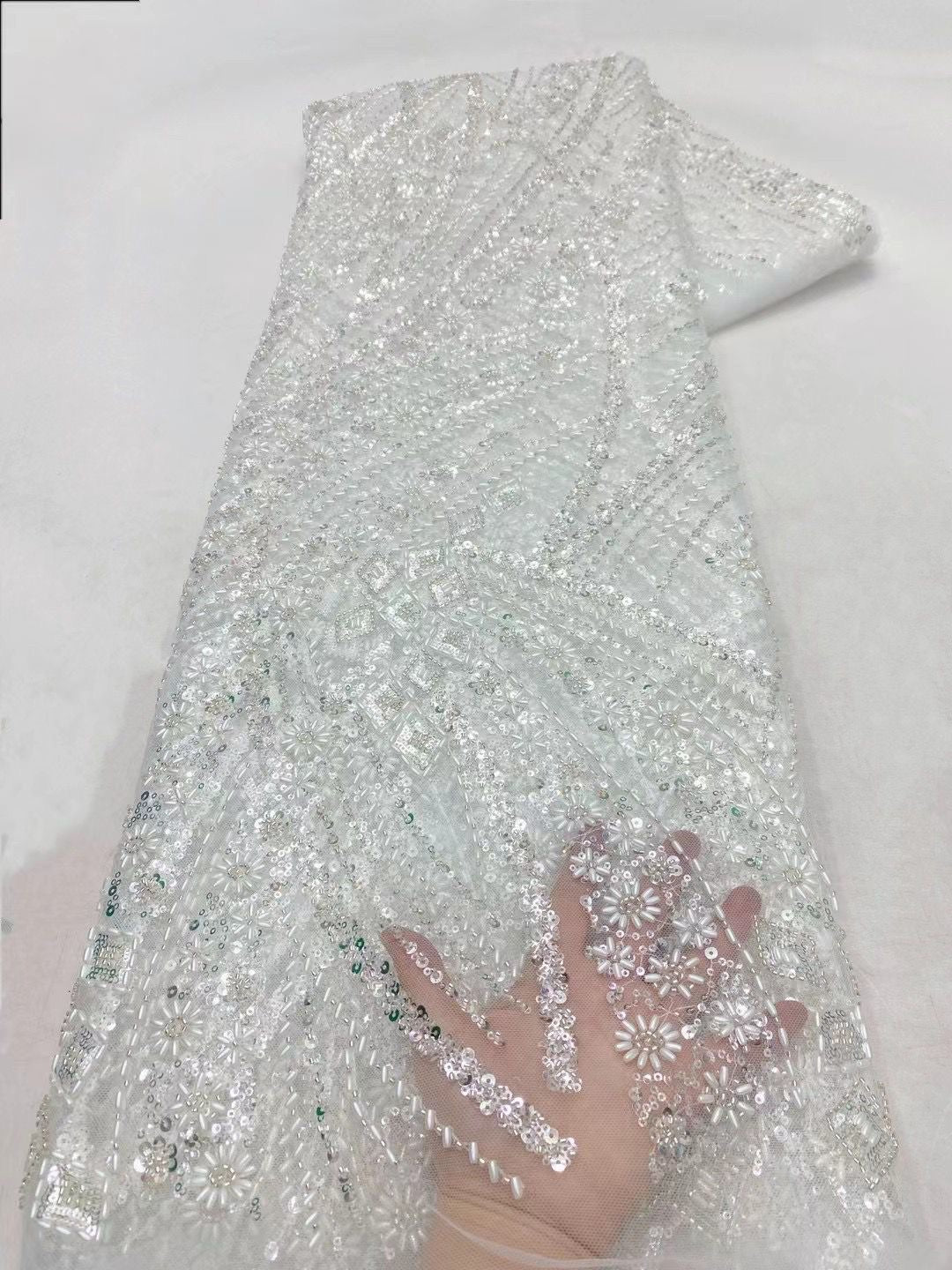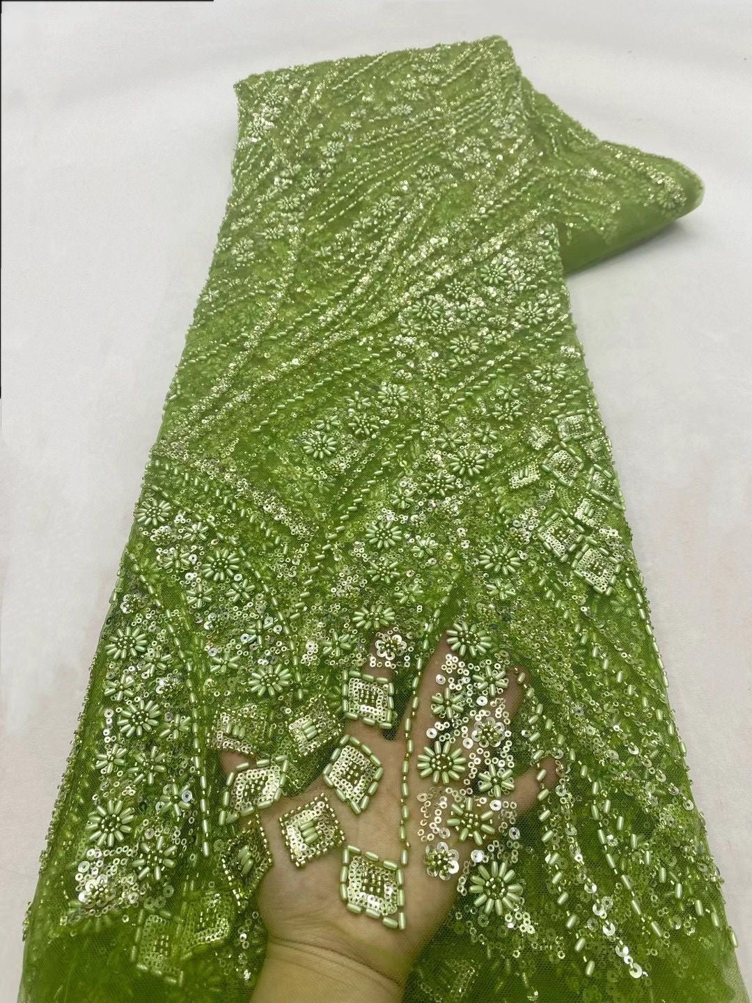 This high quality Fabric is measured in 5 Yards With Embroidered Beading and Sequin. It is soft, very delicate and beautiful.