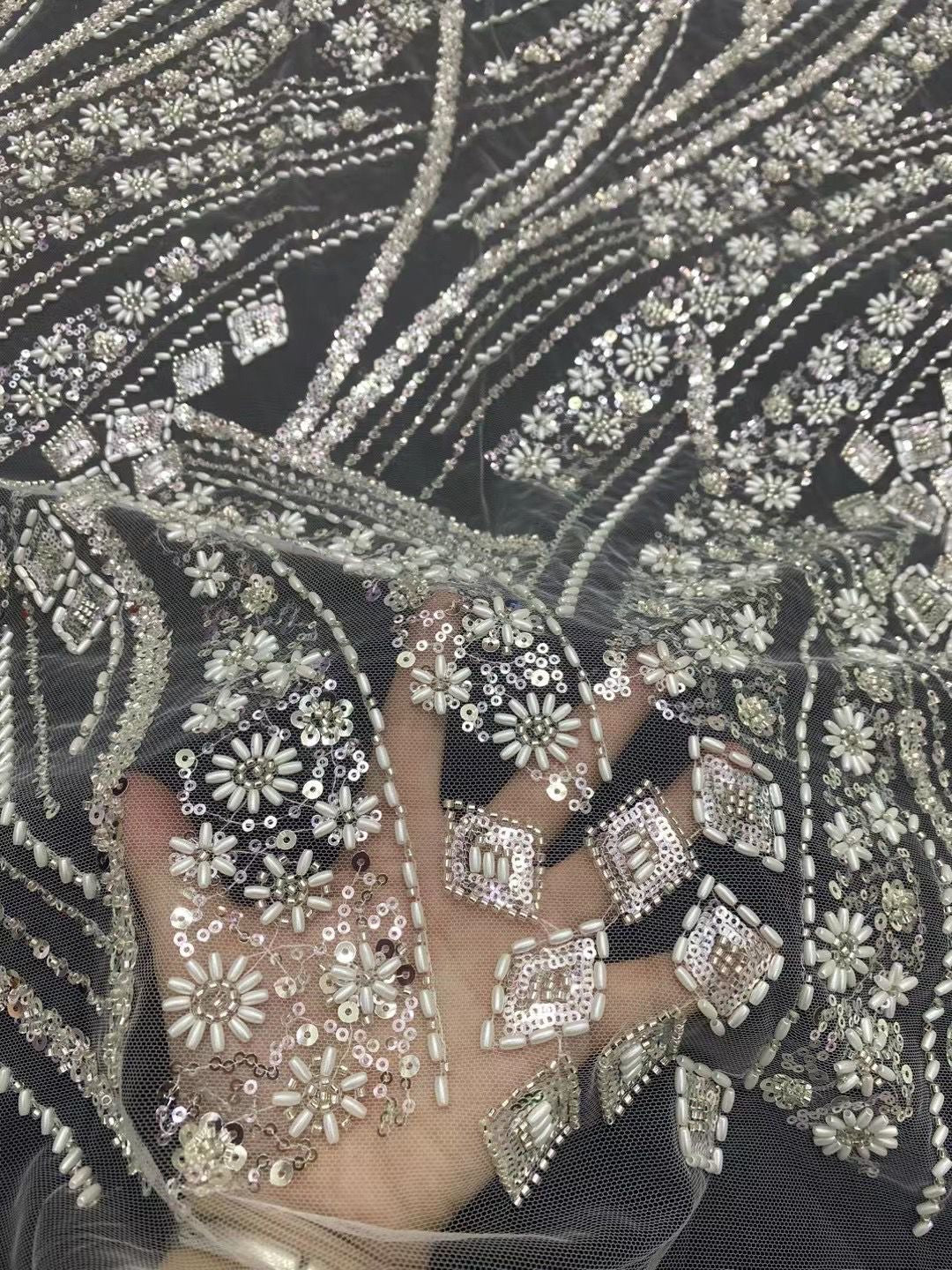 This high Quality Fabric is made with Fashion embroidered rhinestones can be used in making party wedding dresses, skirts, shawls, scarves and other other fashion apparels as you would like.