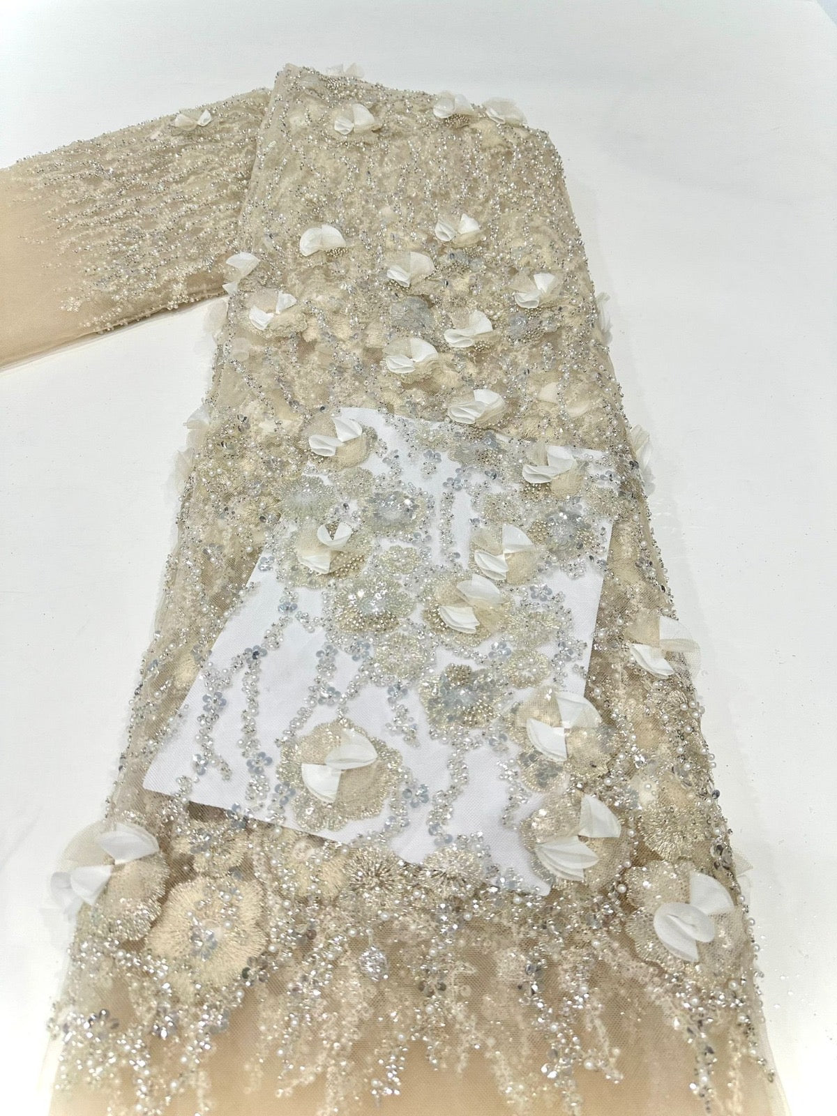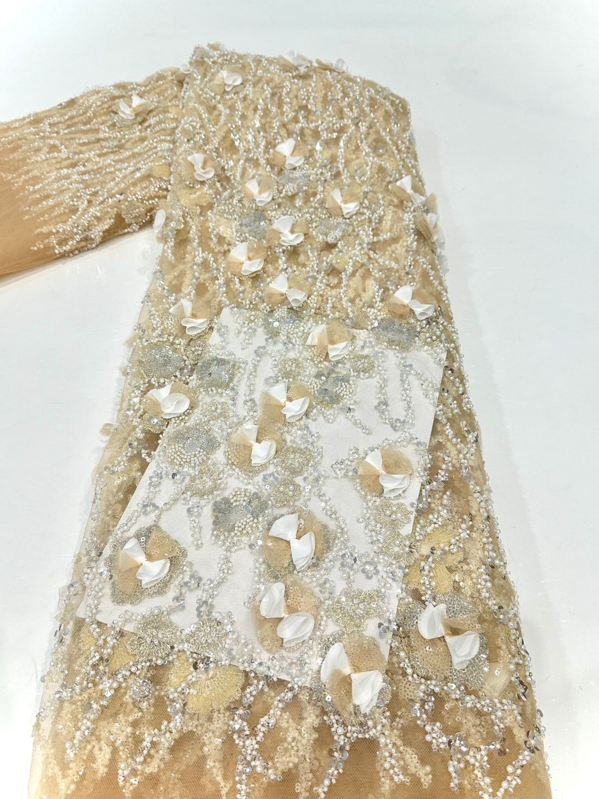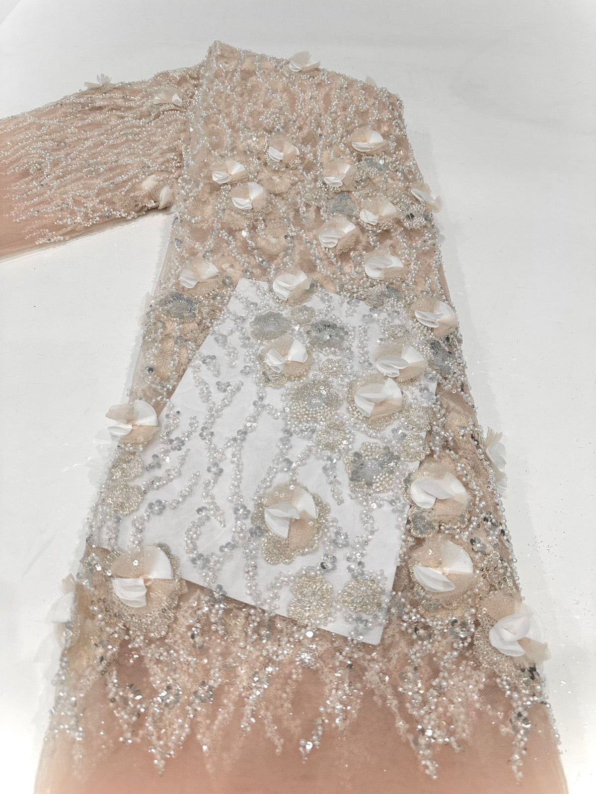 This high quality Fabric is measured in 5 Yards With Embroidered Beading and Sequin. It is soft, very delicate and beautiful.