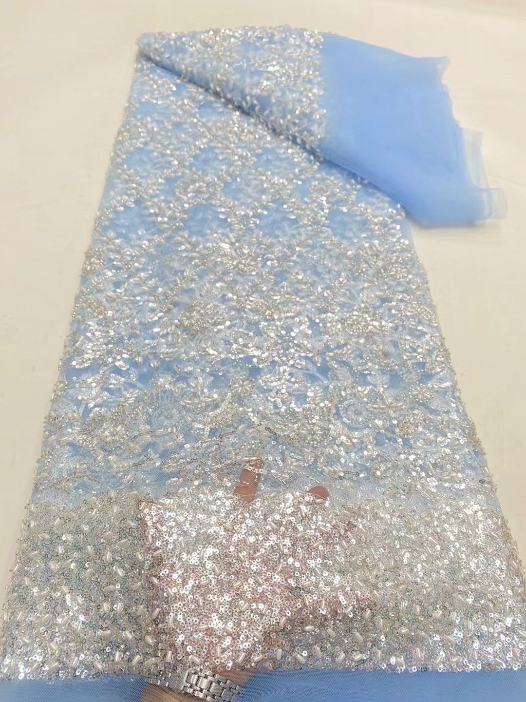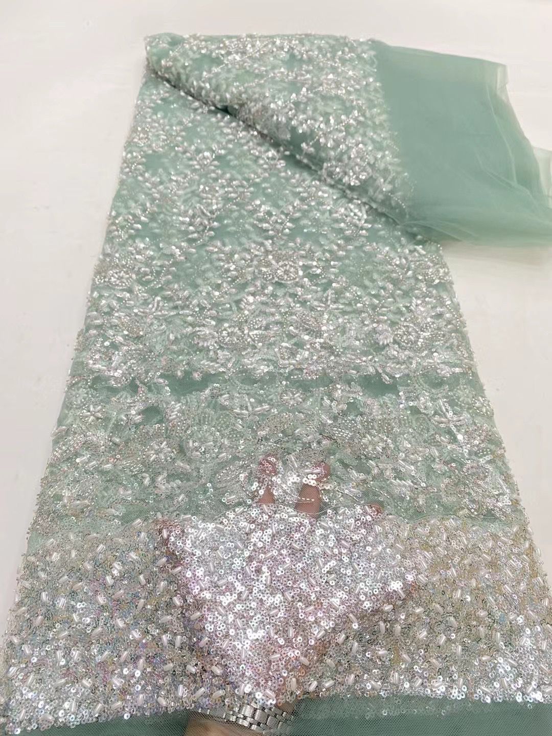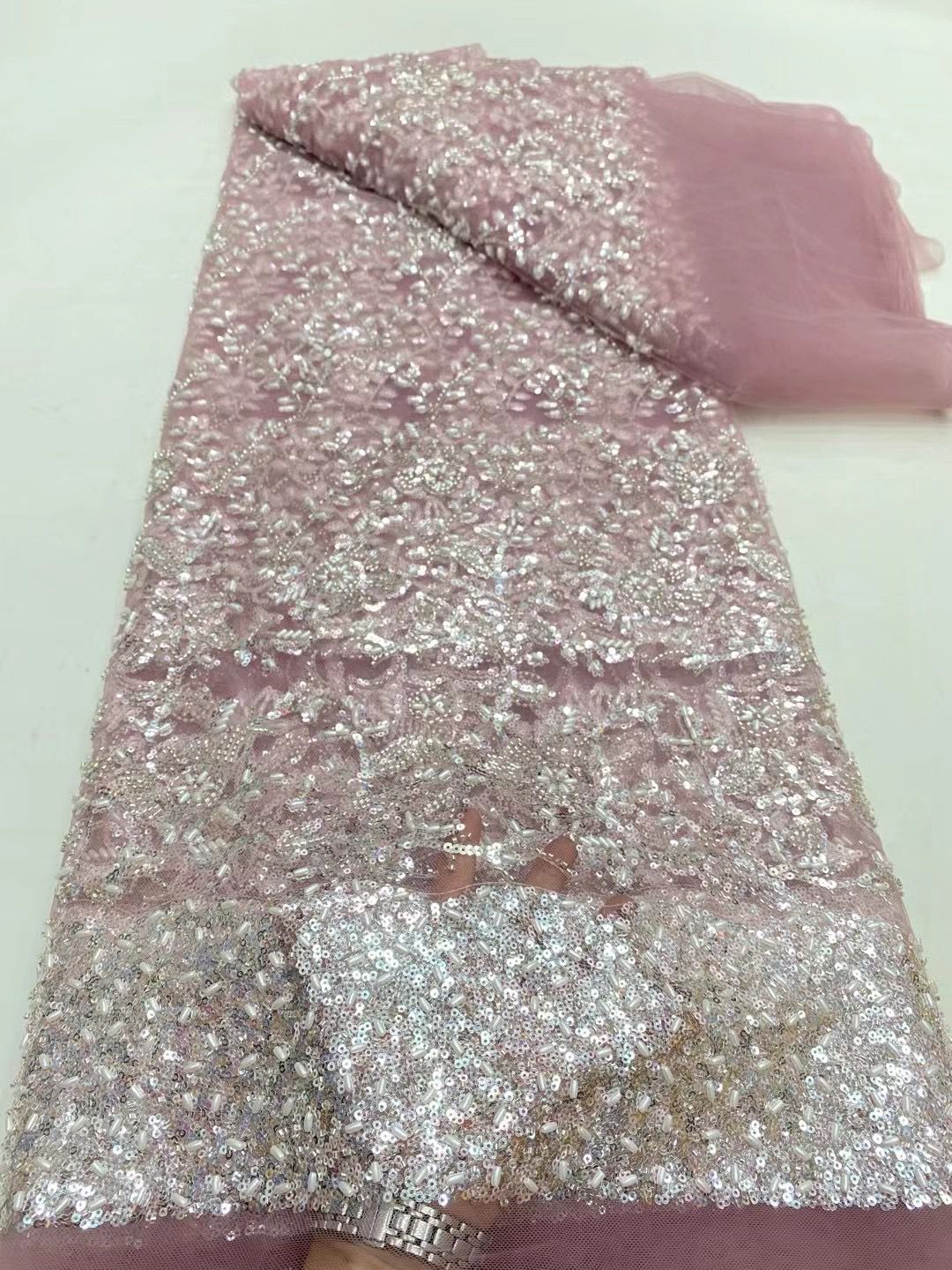 This high quality Fabric is measured in 5 Yards With Embroidered Beading and Sequin. It is soft, very delicate and beautiful.