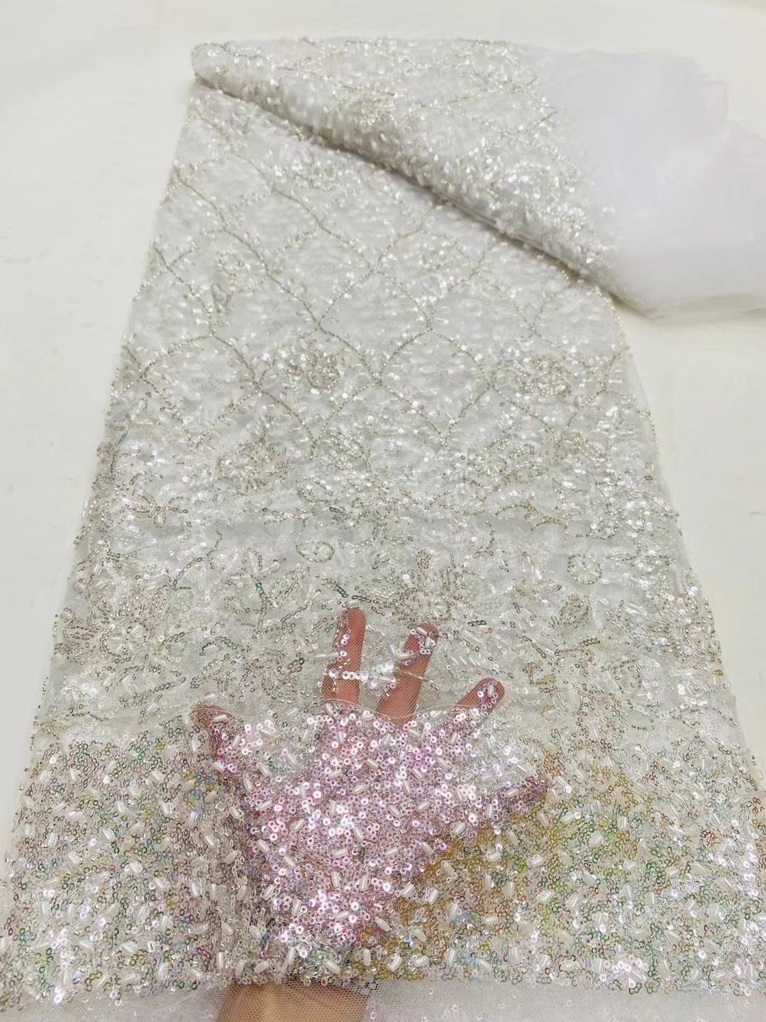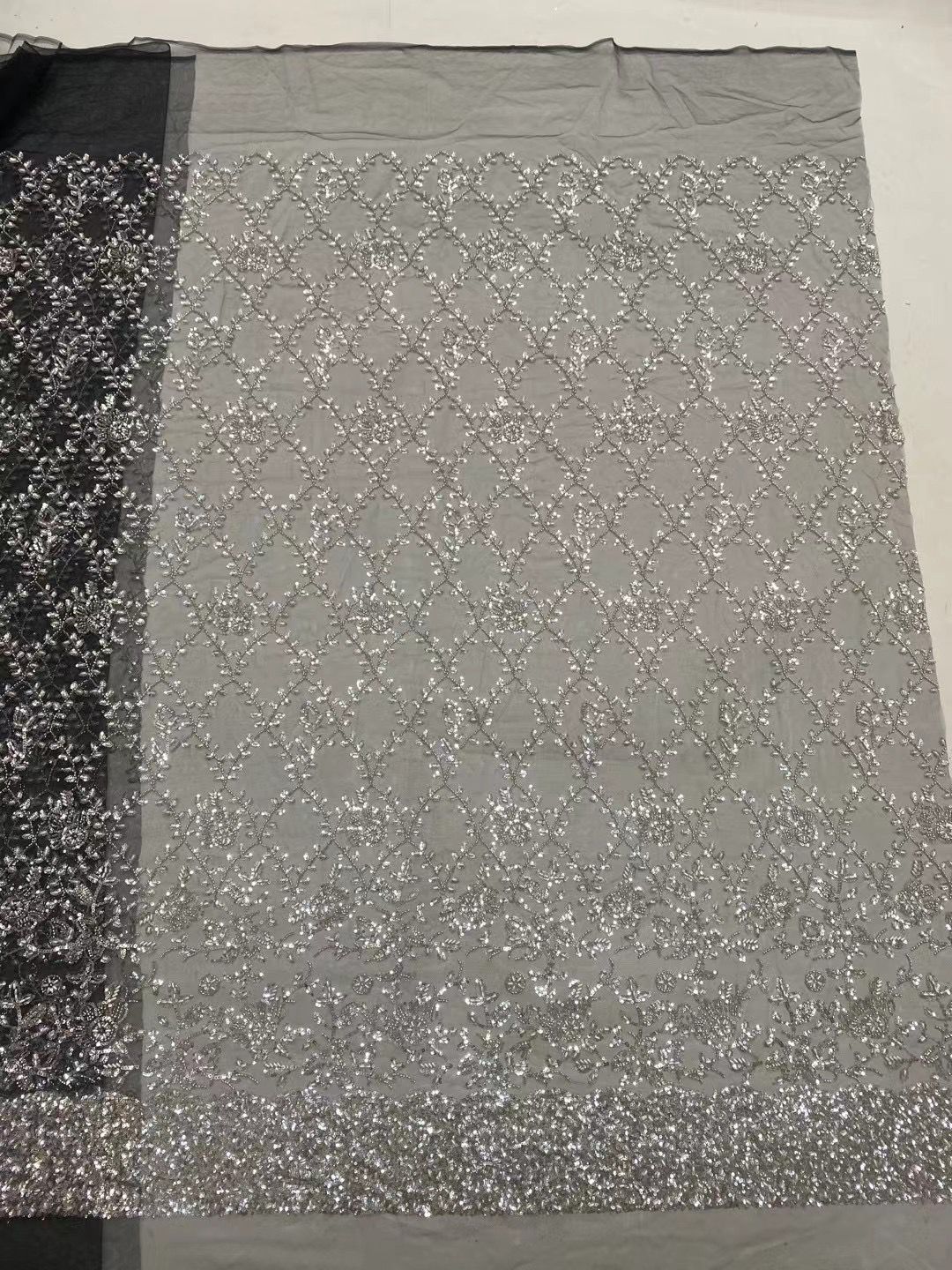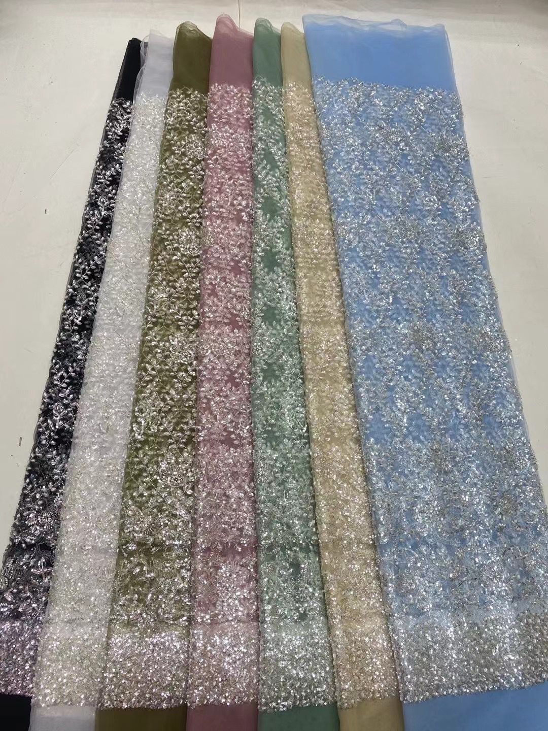 This high Quality Fabric is made with Fashion embroidered rhinestones can be used in making party wedding dresses, skirts, shawls, scarves and other other fashion apparels as you would like.